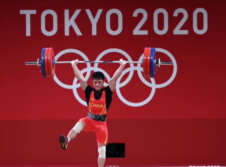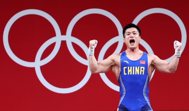 7月28日,中国选手石智勇在东京奥运会举重项目男子73公斤级决赛中,夺得冠军。新华社记者 杨磊 摄