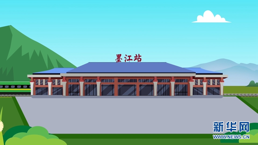 手绘中老铁路墨江站(视频截图)。