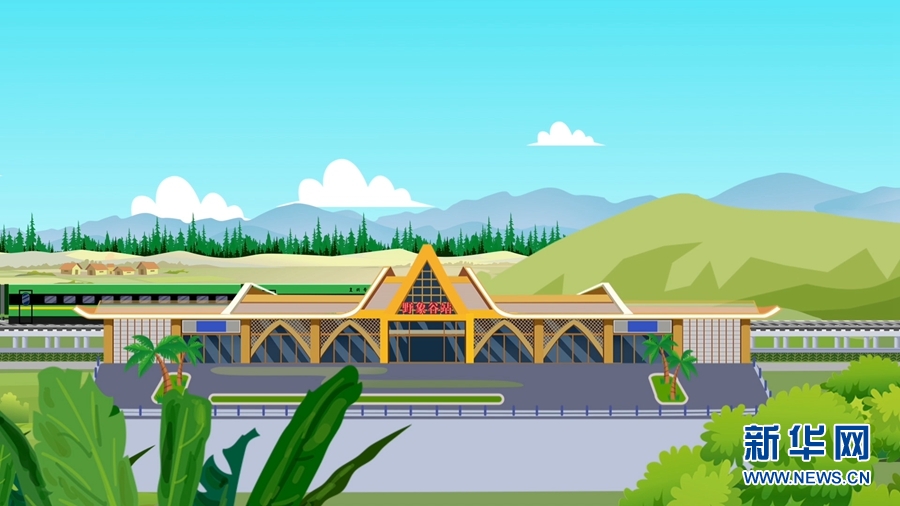 手绘中老铁路磨憨站(视频截图)。