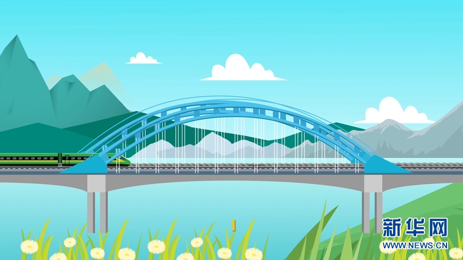 手绘中老铁路元江双线特大桥(视频截图)。