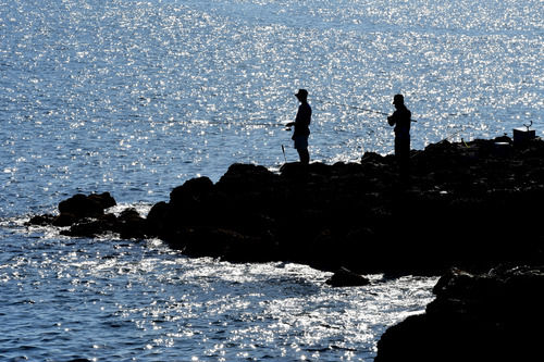2019年8月28日,垂钓者在澎湖海岸边钓鱼。新华社记者朱祥摄