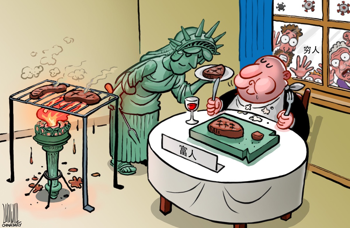 美国民众基本生存权得不到保障。截至2020年底,超过5000万美国人面临食物不足问题,该数字相较于2019年增加了近50%;超过22万人露宿街头。贫富差距愈演愈烈。