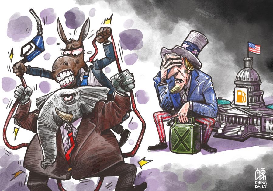 美国两党间的相互争斗,屡屡导致政府“关门”与停摆。联邦政府与州政府的相互掣肘使得国家内部相互争权内耗、联邦政令不畅、基建难以推行。