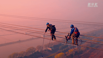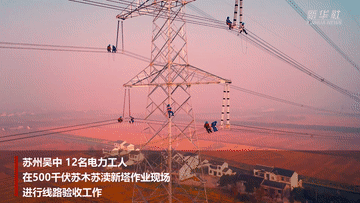 在苏州吴中500千伏苏木苏渎新塔作业现场,12名电力工人徒手爬上80米高的高压线上进行线路验收工作。他们如舞者,在高空翩翩起舞,保障冬日里的用电安全,守护一方安宁。
