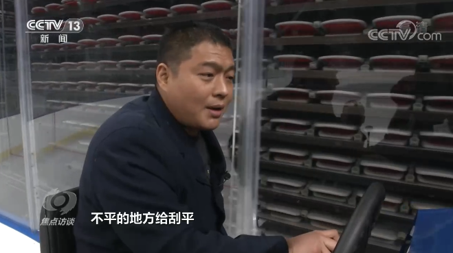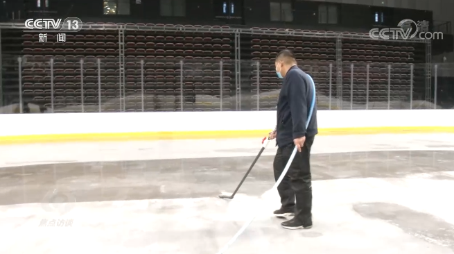 刘永亮说:“每场冰之间给我们30分钟到40分钟的时间去修冰,用浇冰车把冰面全部刮一遍,刮的同时需要洒水,大概是在50度到60度之间的热水,要把这些冰碴融掉,融掉以后再冻上,就相当于整个冰面重新做了一遍,每天都需要大概五次到六次的修冰。”