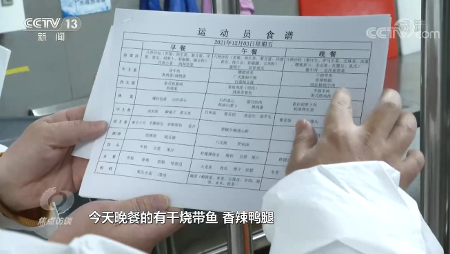 首钢园国家冬季运动训练中心运动员公寓负责人王京娥说:“这些食材都是从中心招标的供应商那里采购的,供应肉食都要签订反兴奋剂协议,这些东西出厂前首先要做检测,做完检测以后给我们,接过来我们还要再去检测,没有问题才能食用。”