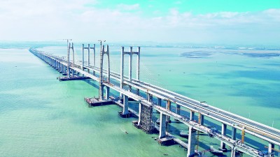 国内首座跨海高铁桥泉州湾跨海大桥日前贯通。胡晓虎摄/光明图片