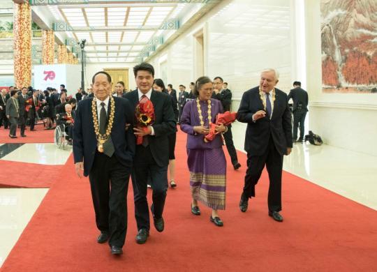 2019年9月29日,国家勋章和国家荣誉称号获得者在仪式后步出人民大会堂金色大厅。经中共中央批准,中华人民共和国国家勋章和国家荣誉称号颁授仪式于9月29日上午10时在北京人民大会堂隆重举行。新华社记者王晔摄