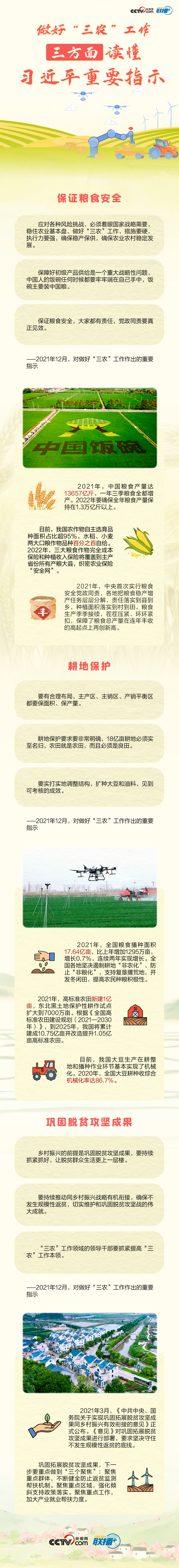 2022年将召开党的二十大,做好“三农”工作、稳定“三农”这个基本盘,对于保持平稳健康的经济环境、国泰民安的社会环境具有特殊重要意义。央视网《联播+》特梳理总书记此次对做好“三农”工作的重要指示,与您一起学习。
