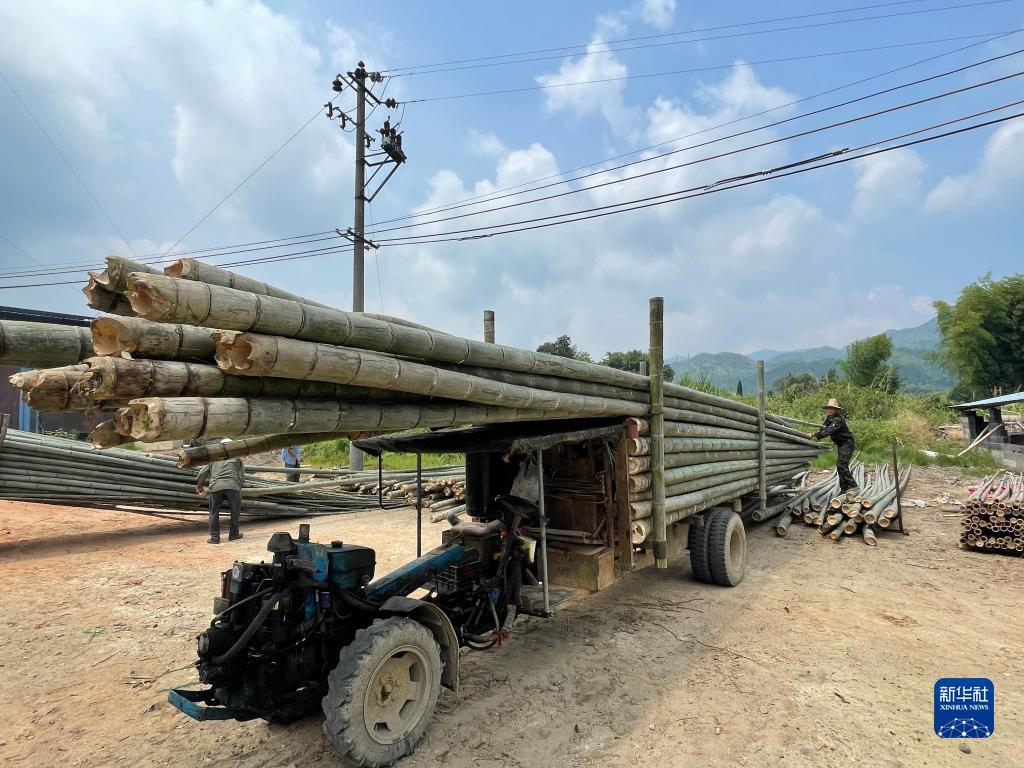 湖南省汝城县热水镇村民在搬运竹子(8月22日摄)。新华社记者 苏晓洲 摄