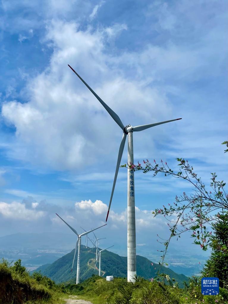 这是在湖南省汝城县拍摄的风力发电机(8月23日摄)。新华社记者 苏晓洲 摄