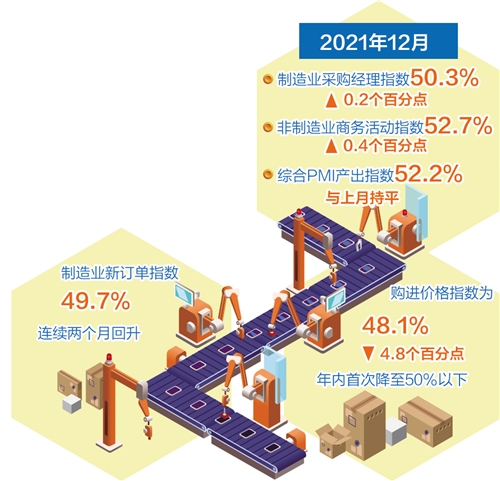 “2021年12月份PMI指数在荣枯线上保持上升,表明中国经济全面恢复的态势进一步明确。”国务院发展研究中心研究员张立群表示,要着力增强扩大内需政策的综合效果,积极改善企业特别是小微企业的宏观经济环境。