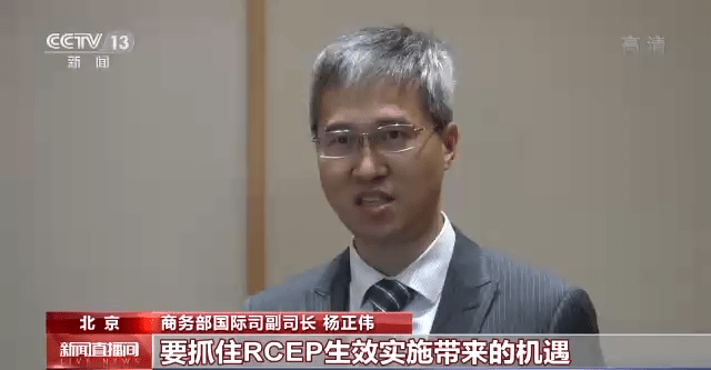 商务部国际司副司长 杨正伟:RCEP还将促进区域贸易投资增长,优化区域分工合作,加强区域产业链供应链,对我国稳外贸稳外资具有重要意义。