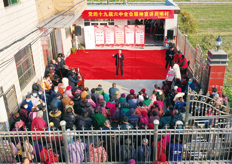 2021年12月5日,江苏省海安市曲塘镇群贤村开展“党的十九届六中全会精神宣讲到咱村”活动,通过百姓名嘴宣讲、文艺表演、诗朗诵等形式,向群众宣传全会精神。 人民视觉 姜明/摄
