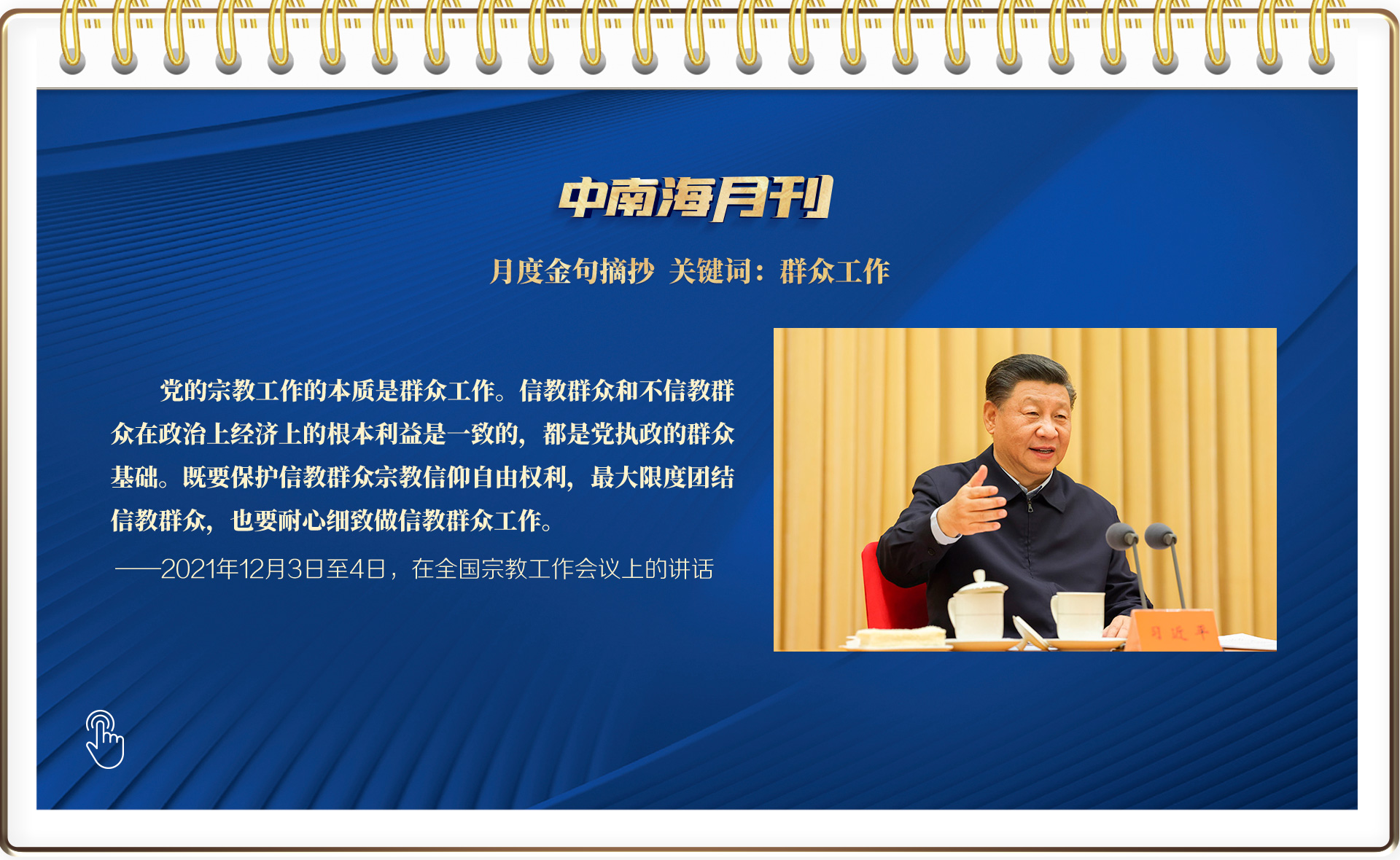 2021年12月3日至4日,全国宗教工作会议时隔五年再次召开。与五年前不同的是,这次会议以电视电话会议形式召开,各省区市和新疆生产建设兵团设分会场。会上,习近平总书记提出的新时代认识宗教、处理宗教问题、做好宗教工作的“九个必须”,既是理论创新成果,也是科学行动指南。