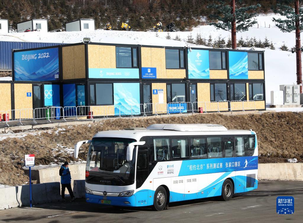 2022年1月6日,在张家口市崇礼云顶滑雪公园,一名工作人员准备乘坐氢燃料大巴出行。新华社记者 杨世尧 摄