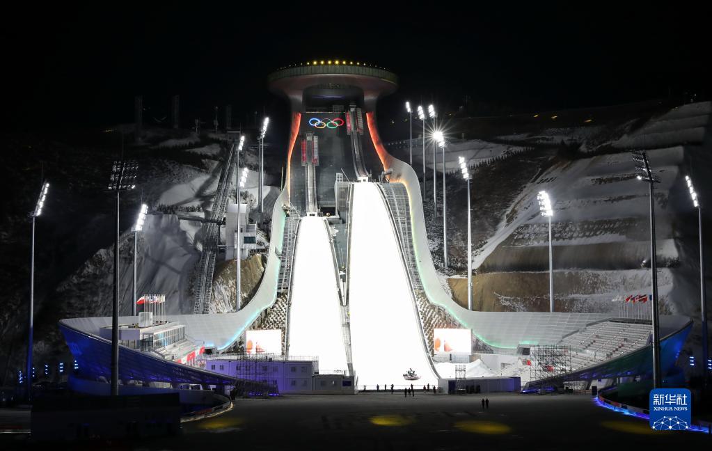 这是工作人员在张家口赛区国家跳台滑雪中心工作(2021年12月31日摄)。新华社记者 杨世尧 摄