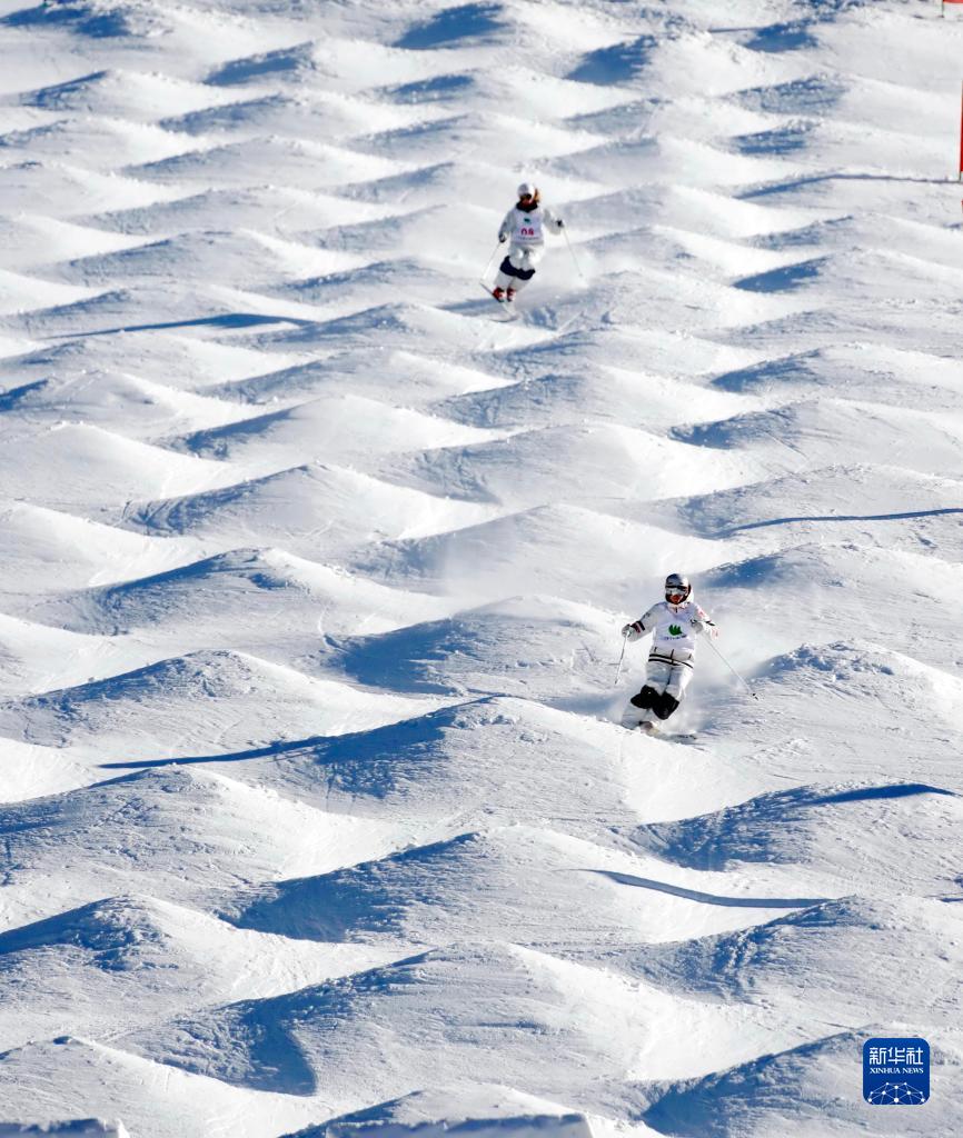 这是运动员在张家口市崇礼区太舞滑雪场参加自由式滑雪雪上技巧比赛(2018年12月14日摄)。新华社记者 杨世尧 摄