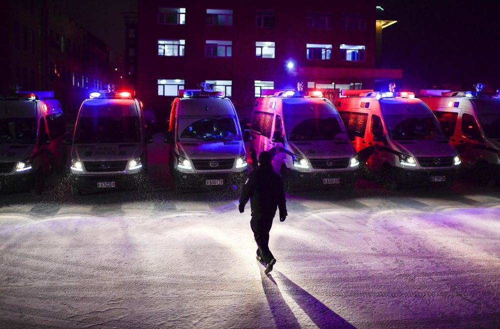 ↑吉林省长春市公安局民警走向巡逻车辆,准备出发执行夜巡任务(2021年1月6日摄)。
