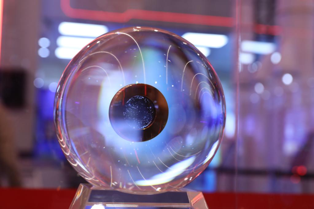 2021年10月21日在北京展览馆拍摄的科技创新成就展展出的月壤样品。(新华社记者金立旺摄)