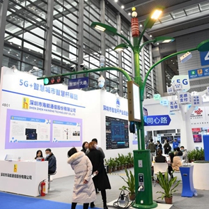 这是2021年12月27日拍摄的第二十三届高交会上展出的多功能智慧杆。(新华社记者梁旭摄)
