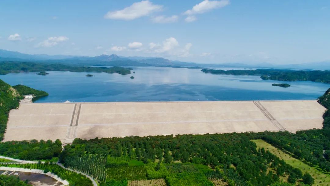 这是2021年8月24日拍摄的北京密云水库白河大坝(无人机照片)。新华社发(北京市水务局供图)