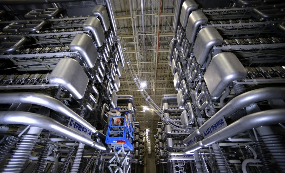 2021年9月25日,国网北京市电力公司延庆换流站的员工在检查变电设备。新华社记者 李欣 摄
