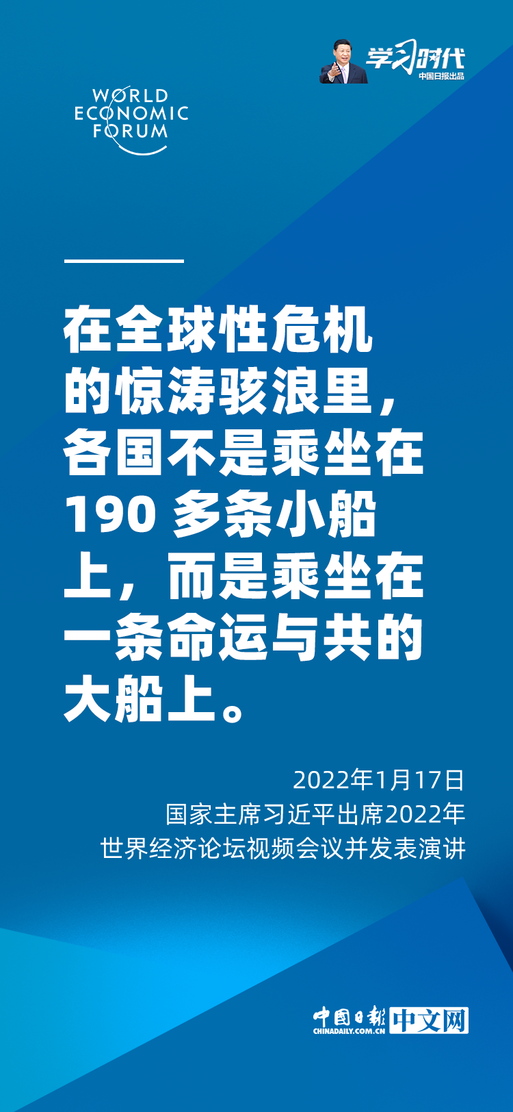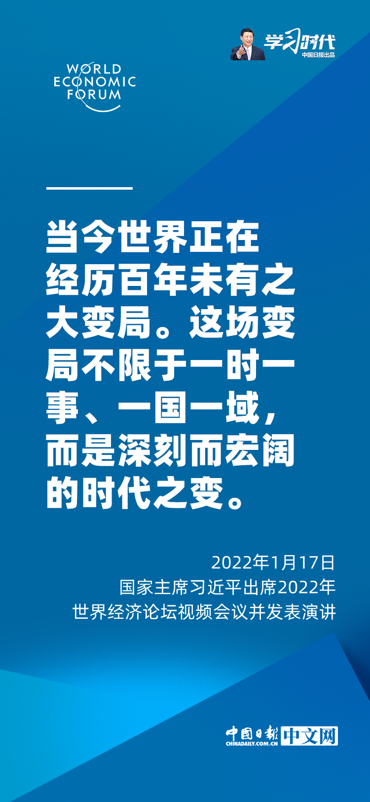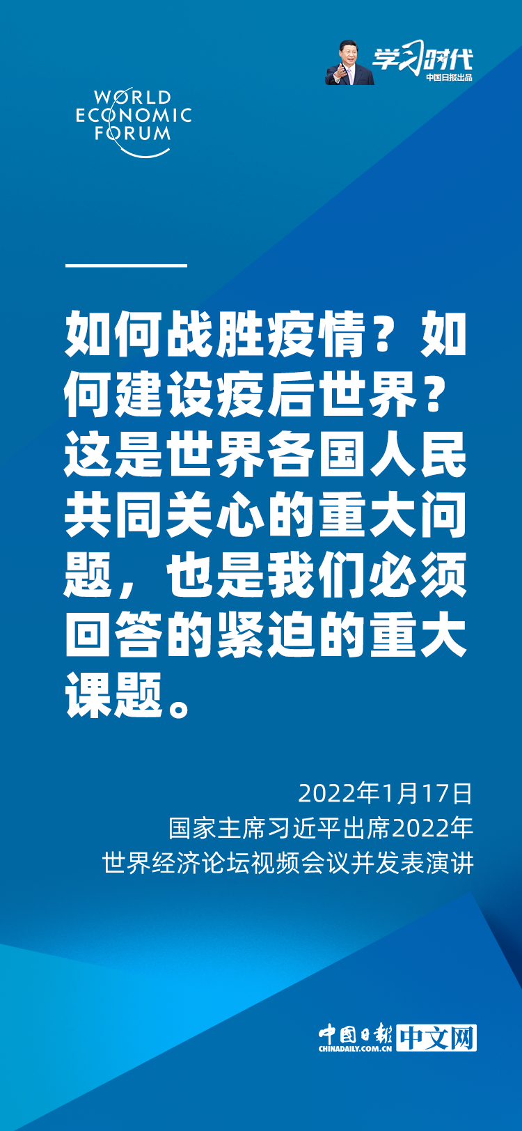 国家主席习近平1月17日在北京出席2022年世界经济论坛视频会议并发表题为《坚定信心 勇毅前行 共创后疫情时代美好世界》的演讲。