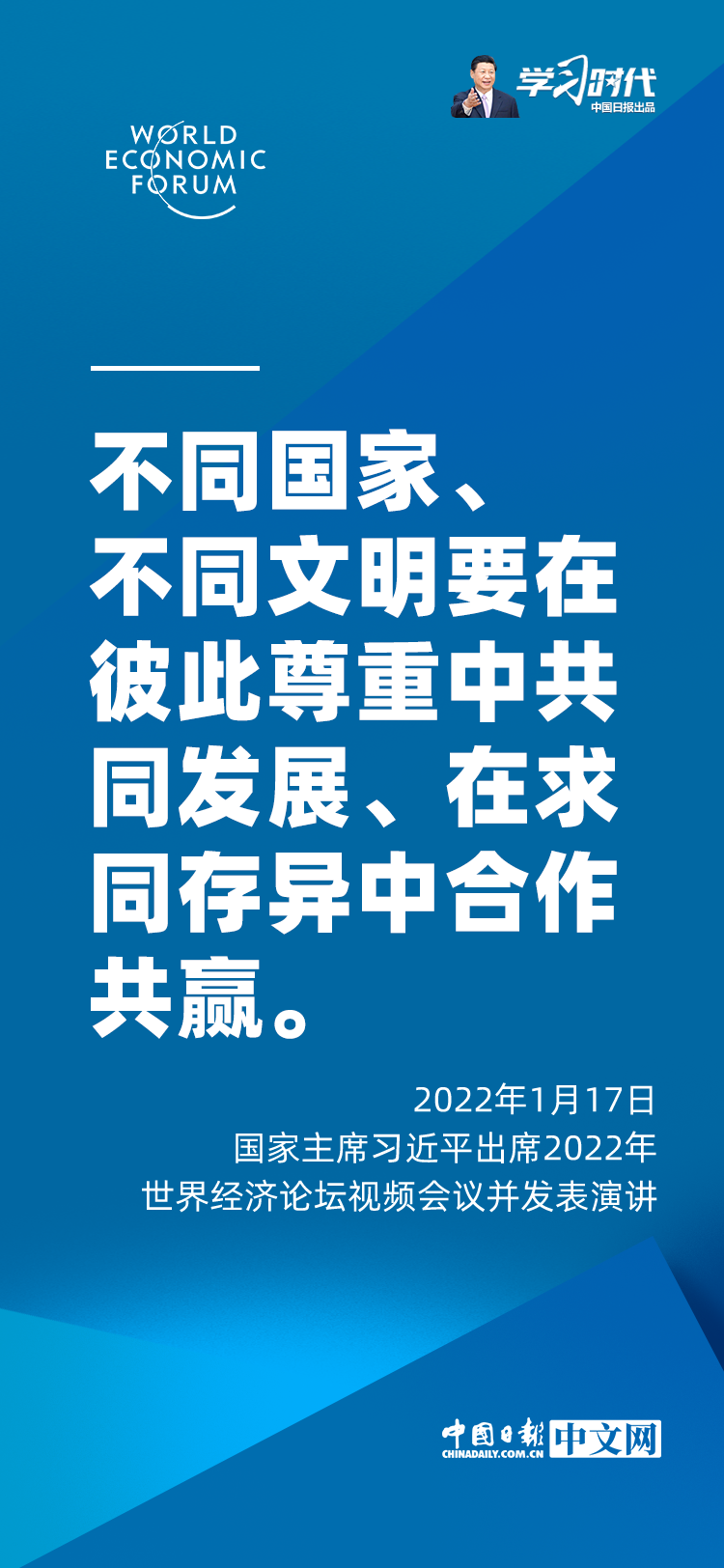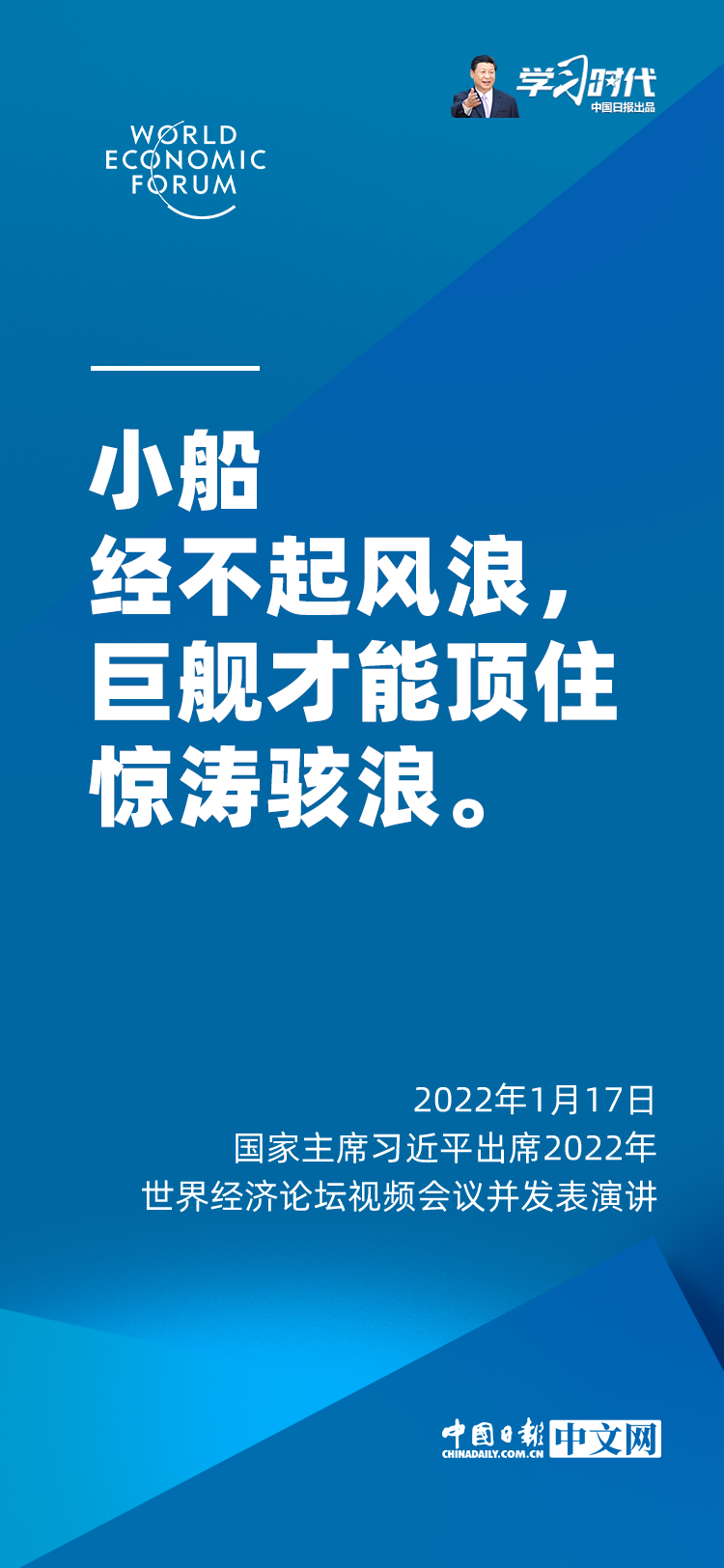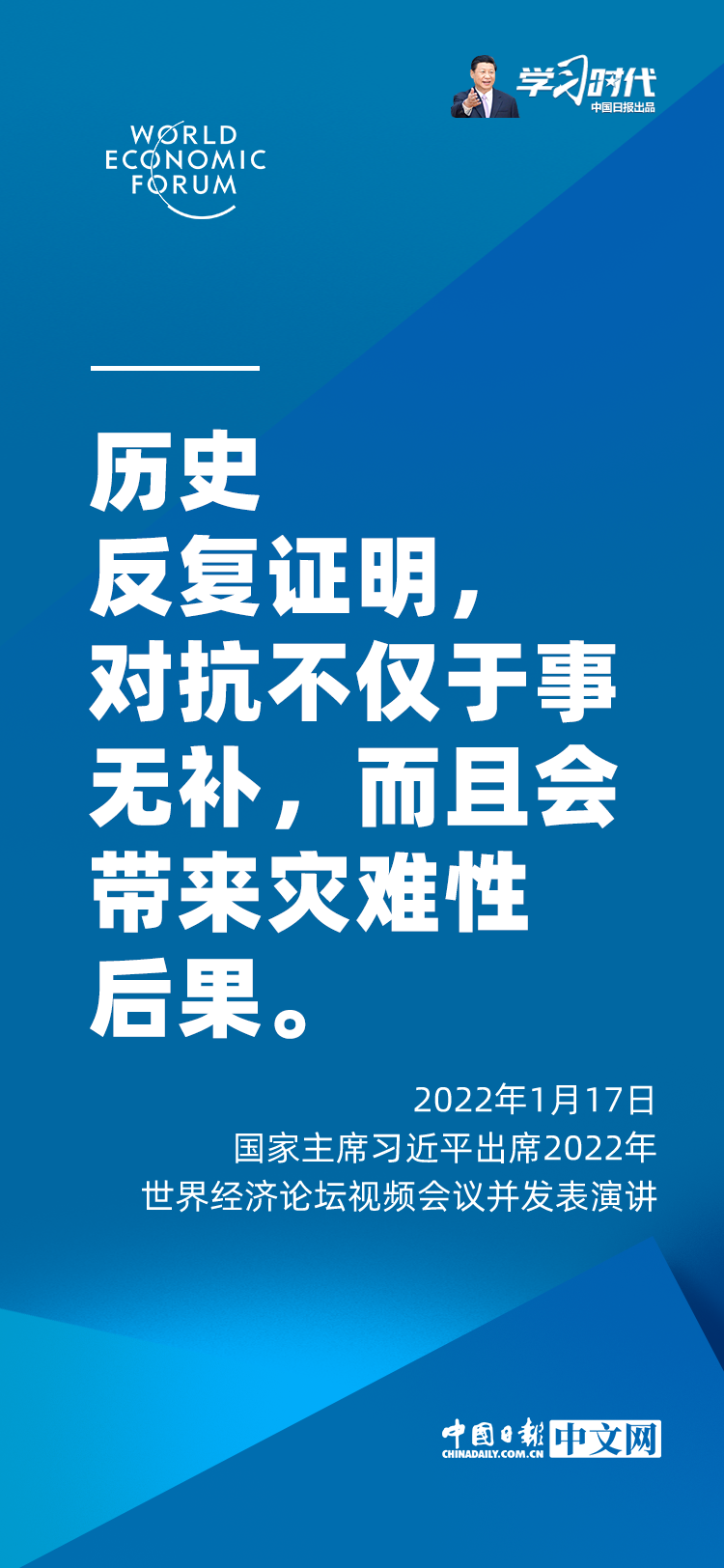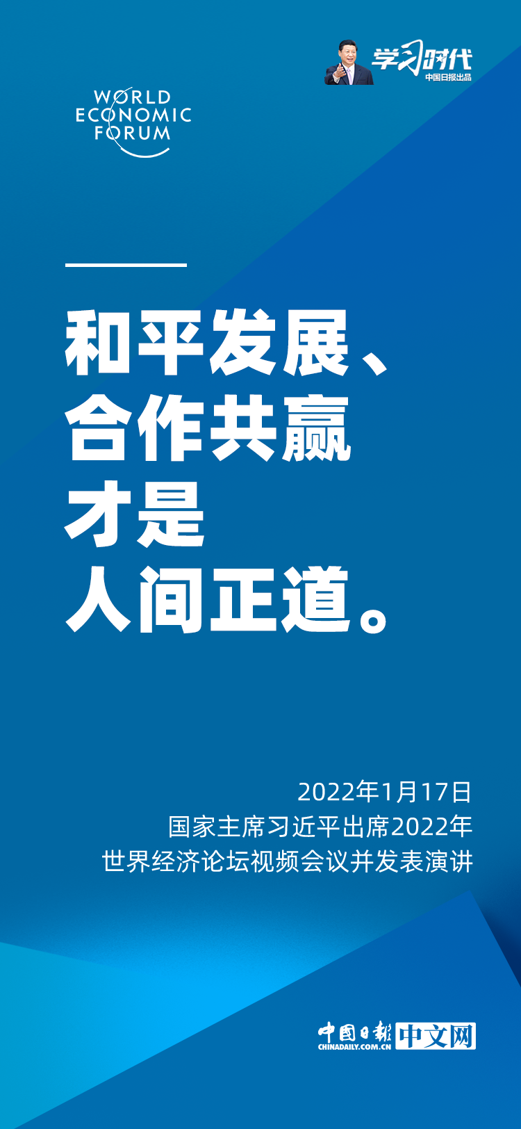 国家主席习近平1月17日在北京出席2022年世界经济论坛视频会议并发表题为《坚定信心 勇毅前行 共创后疫情时代美好世界》的演讲。
