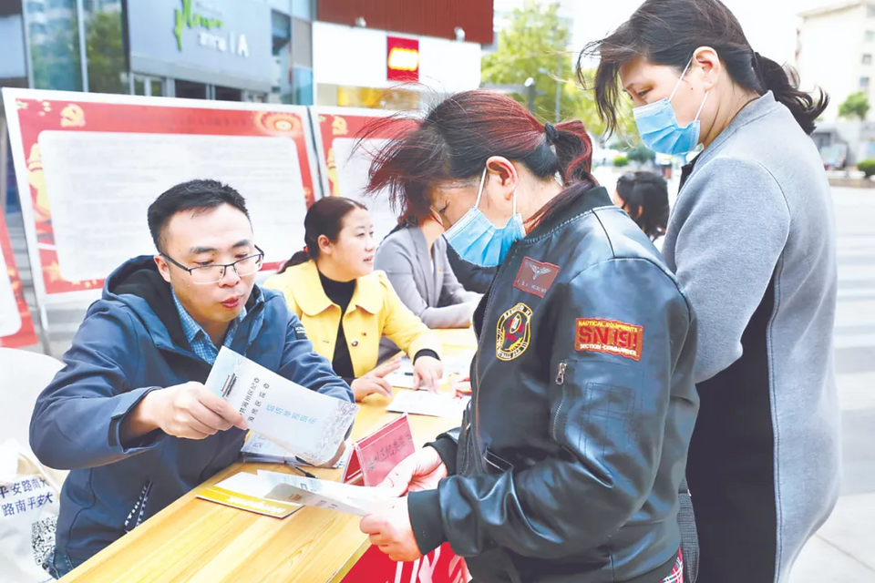江苏省连云港市海州区纪委监委开展信访宣传专项行动,在乡镇集市、街道人流量大的地方现场接访,倾听群众心声,掌握第一手社情民情。图为该区纪检监察干部向群众讲解信访举报受理流程。张孟瑞 摄