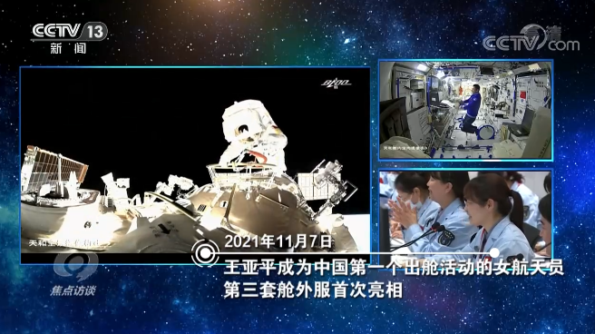 2021年11月7日,王亚平成为中国第一个出舱活动的女航天员,第三套舱外服首次亮相;2021年12月9日,神舟十三号飞行乘组进行中国空间站的第一次太空授课;2021年12月26日,翟志刚、叶光富完成神舟十三号飞行乘组第二次出舱,第一次验证舱外携物转移;2022年1月6日,空间站机械臂转位货运飞船试验取得圆满成功,为后续实验舱转位验证可行性;2022年1月8日,神舟十三号飞行乘组完成第一次遥操作交会对接试验。