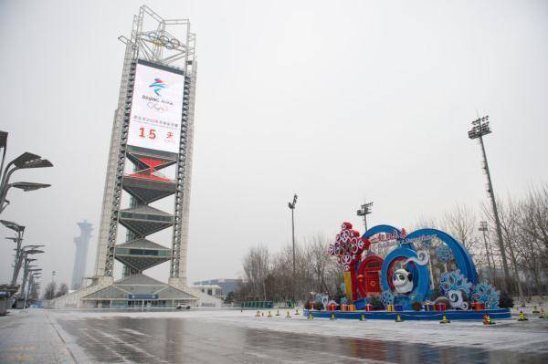 1月20日,位于北京奥林匹克公园内的北京冬奥会倒计时牌和冬奥主题景观。新华社记者陈钟昊摄