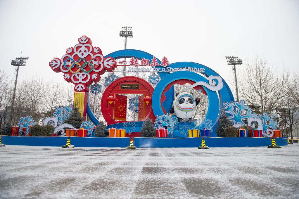 1月20日拍摄的北京奥林匹克公园内的一处冬奥主题景观。新华社记者 陈钟昊 摄