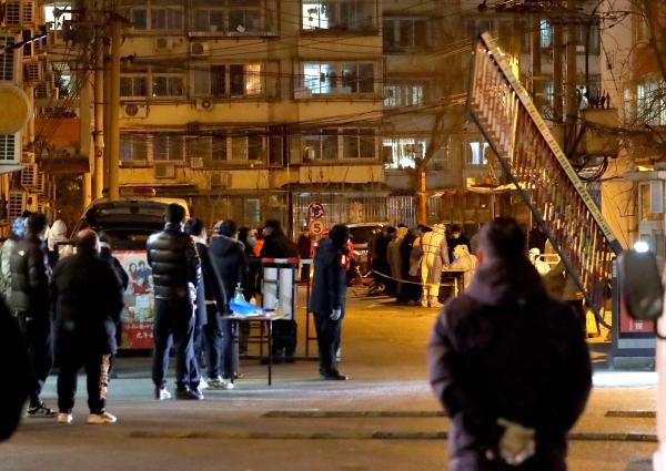 △1月19日,北京,万柳园小区居民在排队进行核酸检测。