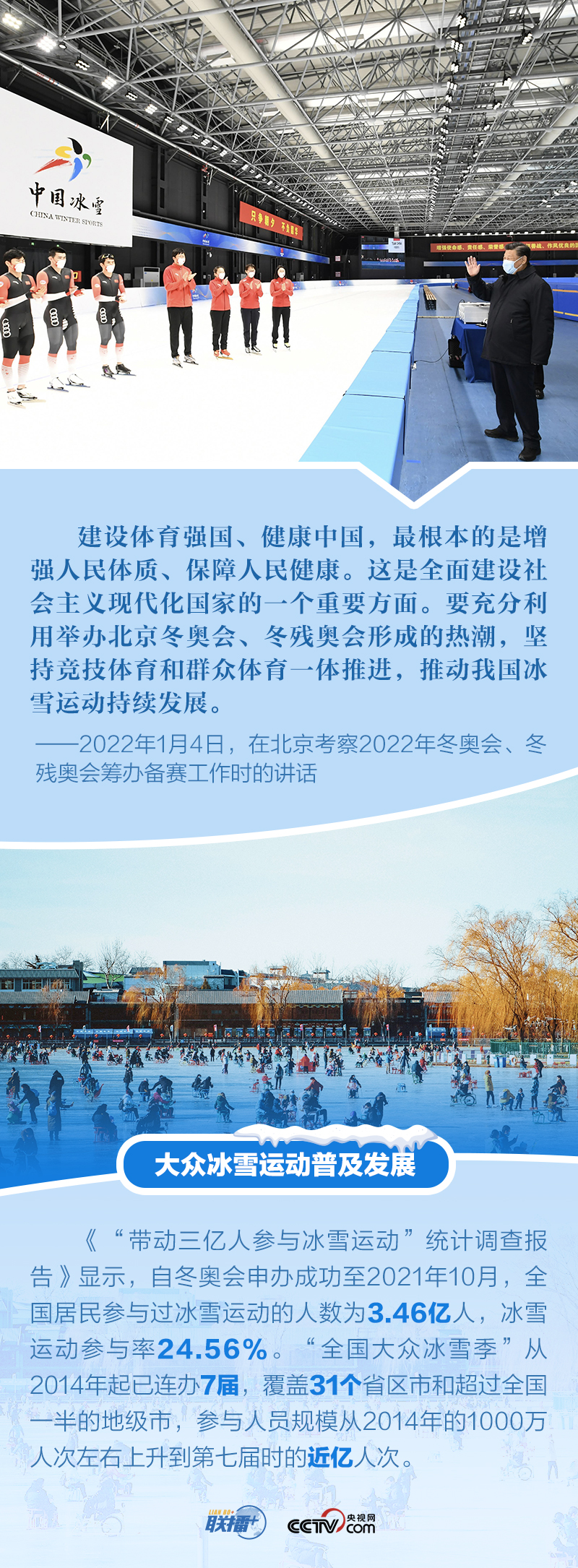 冬奥梦交汇中国梦,体育强则中国强。多年来,体育爱好者习近平始终关注我国冰雪运动发展,在不同场合强调对冬季奥林匹克运动的支持,宣示办好北京冬奥会、冬残奥会的决心。距离北京冬奥会开幕仅十余天,央视网《联播+》特梳理总书记关于北京冬奥会、冬残奥会筹办备赛工作的重要活动及讲话等,与您一起学习。