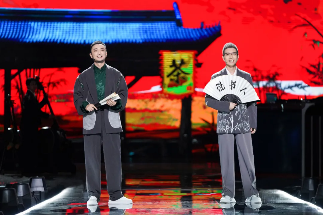 “侠义多是平凡辈,何须仗剑走天涯。”“央视boys”朱广权和尼格买提变身“说书人”,用热血快意演绎武侠梦;六位造型唯美的“央视girls”上演了一场精彩的《望飞花》,尽显“非遗”功力。