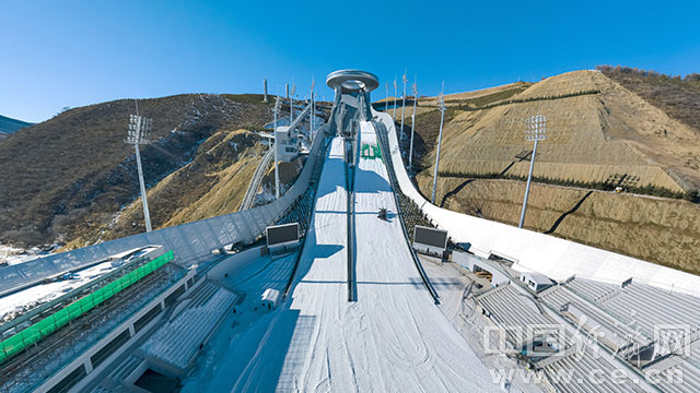 国家跳台滑雪中心是张家口赛区工程量最大、技术难度最高的竞赛场馆,同时也创造了许多个“第一”。国家跳台滑雪中心不仅是我国第一个跳台滑雪场地,也是世界上首个采用全钢筋混凝土超长框架结构、首个在顶部出发区设置大型悬挑建筑物的跳台滑雪场馆,还拥有着世界上最长的跳台滑雪赛道。