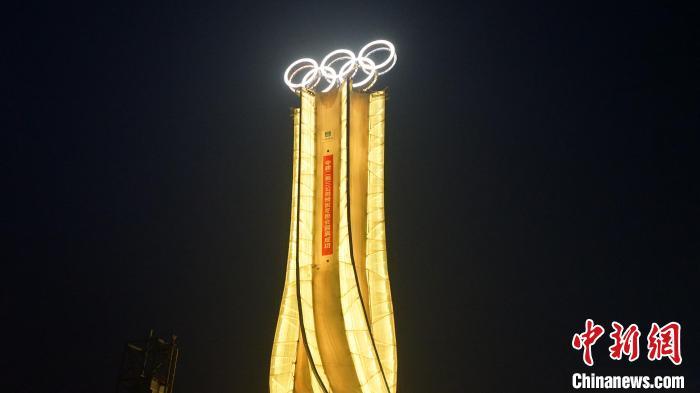 在北京延庆,120米高的“海陀塔”遥遥矗立,巨型的奥运五环标志成为一道亮眼的风景。