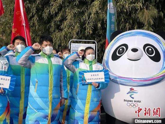 图为台湾青年冬奥城市志愿者宣读志愿者誓词。 中新社记者 朱贺 摄