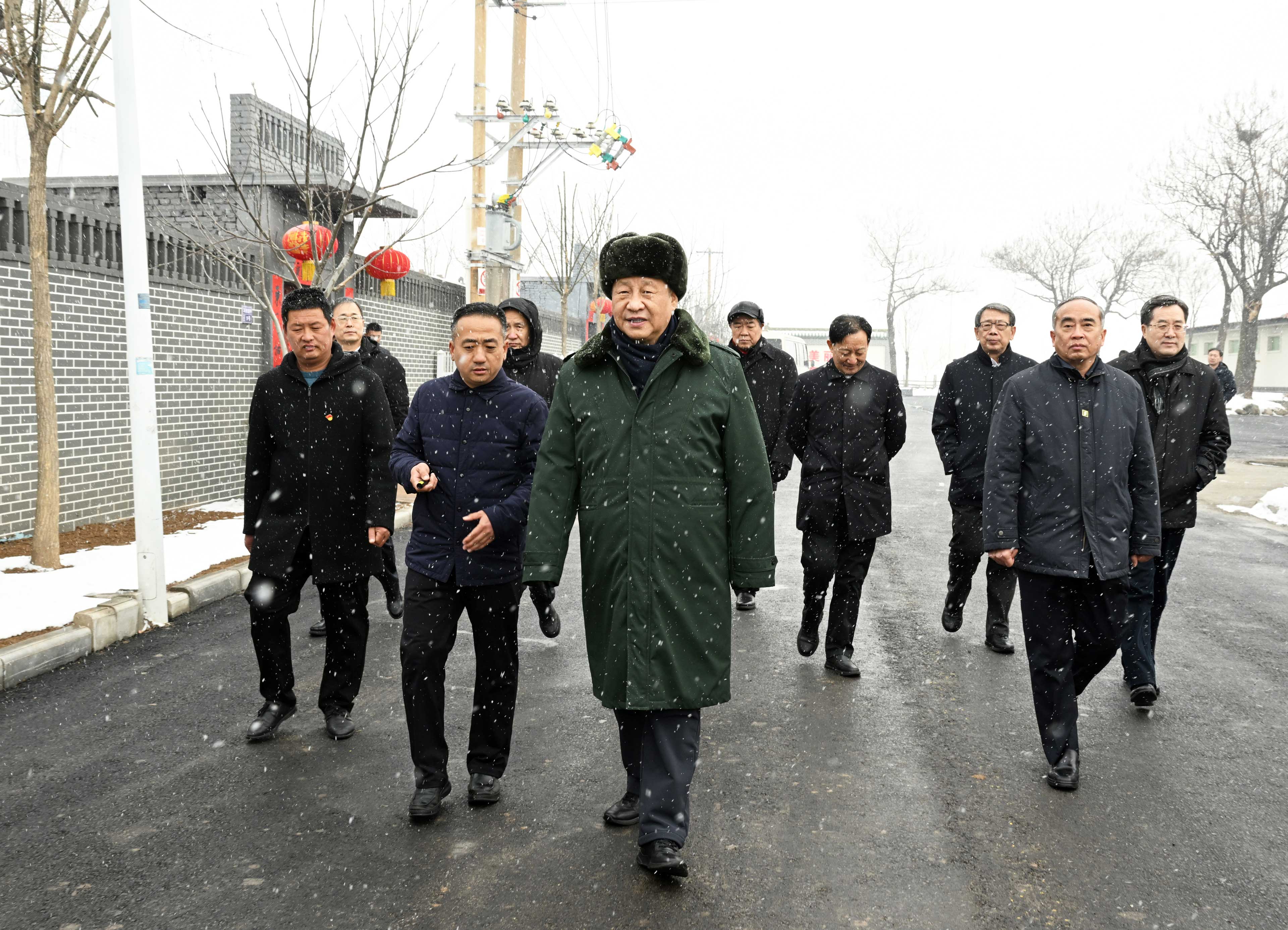 △2022年1月26日,中共中央总书记、国家主席、中央军委主席习近平冒雪在临汾市霍州市师庄乡冯南垣村考察。