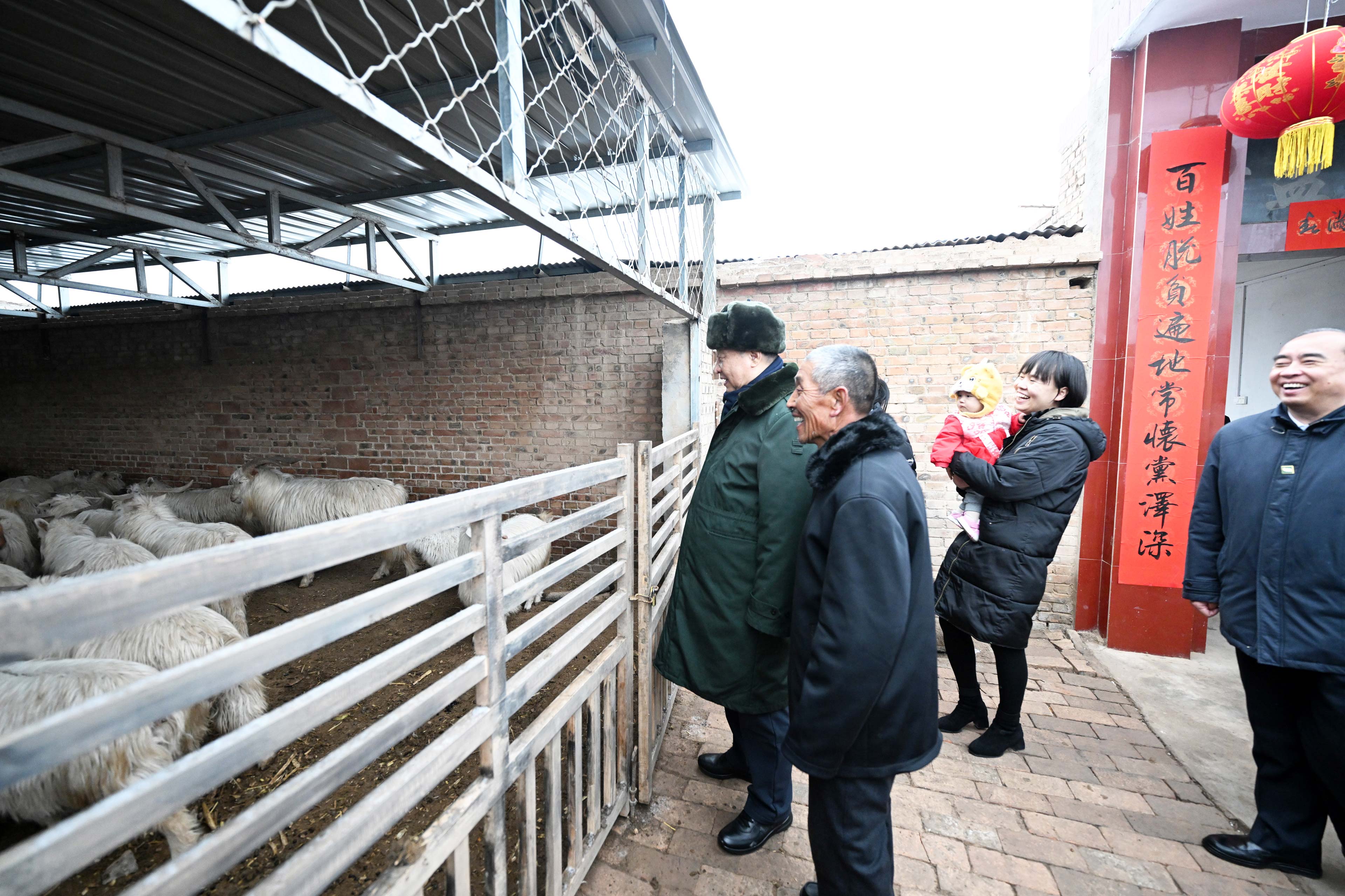 △2022年1月26日,中共中央总书记、国家主席、中央军委主席习近平在临汾市汾西县僧念镇段村蔡文明家察看羊圈。