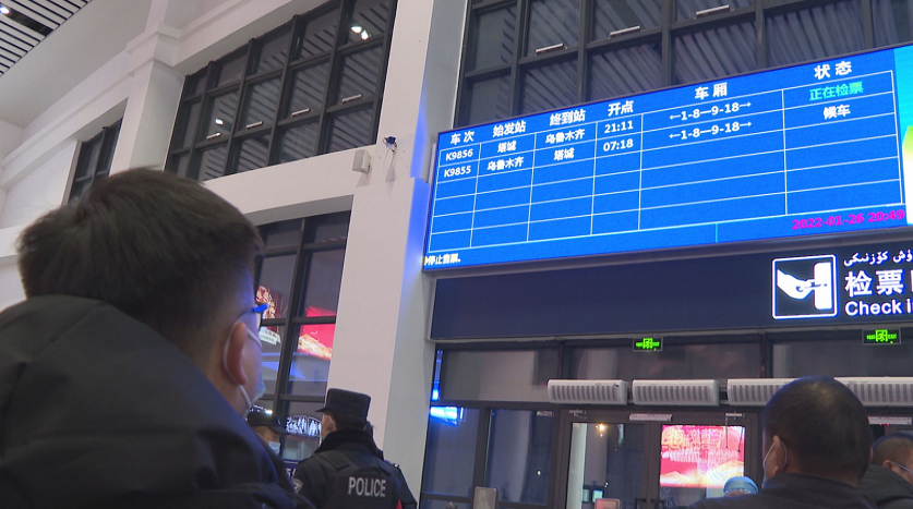 晚上7点刚过,天微微黑,返乡的旅客拎着大包小包的行囊,急匆匆地走进安检站;候车大厅里,旅客们都自觉戴好口罩,脚边堆满了行李和新疆的特产;自助取票机前,车站工作人员正在帮助有需要的旅客取票;大厅中间的服务台前,几位大爷在咨询问题;铁路工作人员还在不停地巡视着安控工作。虽然进入春运高峰期,但是整个车站井然有序,和谐、温馨。