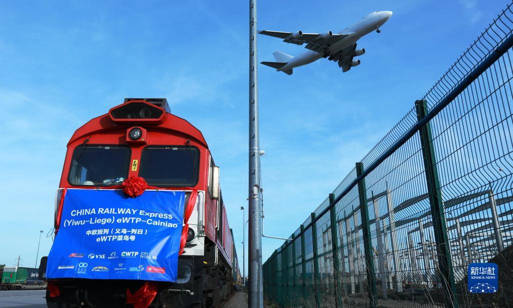 2019年10月25日,满载着82个标准箱的中欧班列(义乌—列日)“世界电子贸易平台(eWTP)菜鸟号”首趟列车抵达比利时列日物流多式联运货运场站。新华社记者 潘革平 摄
