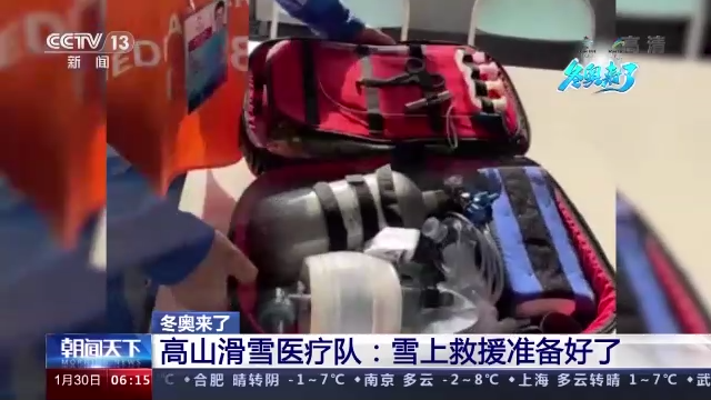 滑雪医疗队由医生、场馆巡逻队员、120急救转运系统,救援直升机等组成。医疗队在线上展示了医疗包和雪上救援的准备情况,据介绍,这个背包有12公斤重,比赛时,为了保障运动员一旦受伤能够第一时间得到救治,高山滑雪医疗队的医生们需要背着它在赛道上滑行。高山滑雪项目赛道目前已完成注水,赛道为冰状雪,危险性高,往届冬奥会运动员受伤概率大,救援难度大。