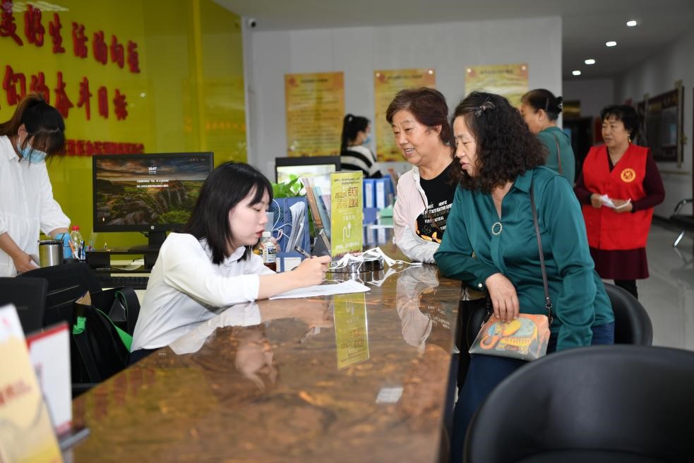 滨河社区工作人员正在为新志愿者办理手续。陈琦嘉 摄