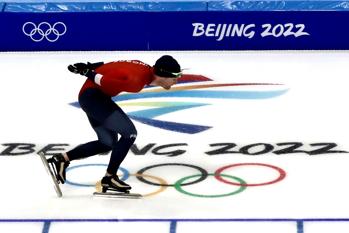 1月30日,在国家速滑馆“冰丝带”,运动员在进行赛前训练。 中国日报记者 张威 摄