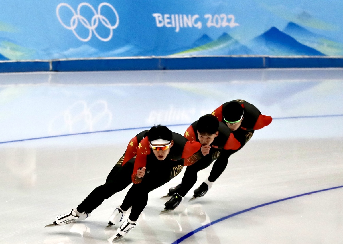 1月30日,在国家速滑馆“冰丝带”,中国运动员在进行赛前训练。 中国日报记者 张威 摄