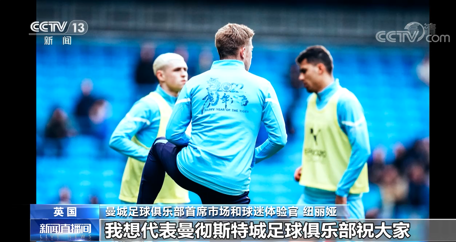 随着中国虎年春节和北京冬奥会的临近,英国曼彻斯特城足球俱乐部也为中国送上了祝福。在此前的比赛训练期间,曼城球队球员统一身着“虎年大吉”的训练服。在比赛中,曼城主场的场边广告牌也打出了“城意满满,虎年大吉”的标语。