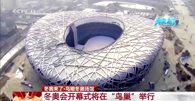 现在我们从空中看到的是国家体育场,也就是人们俗称的“鸟巢”。这里是2008年北京夏季奥运会的主体育场。时隔14年,全球目光将再次聚焦这里。2月4日,冬奥会开幕式将在“鸟巢”举行, “鸟巢”将成为世界上首个既举办过夏季奥运会又举办冬季奥运会开、闭幕式的“双奥场馆”。备受期待的冬奥会开幕式,将以“构建人类命运共同体”为核心表达,展现自然之美、人文之美和运动之美。