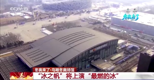 现在我们看到的是国家体育馆。它的外形犹如一艘在奥林匹克中心区航行的巨型帆船,因此也拥有了一个昵称——叫做“冰之帆”。同样作为“双奥场馆”,国家体育馆曾经举办过2008年北京夏季奥运会的体操、蹦床等项目的比赛。北京冬奥会期间,这里将进行精彩激烈的冰球比赛,让我们期待“冰之帆”里上演“最燃的冰”。